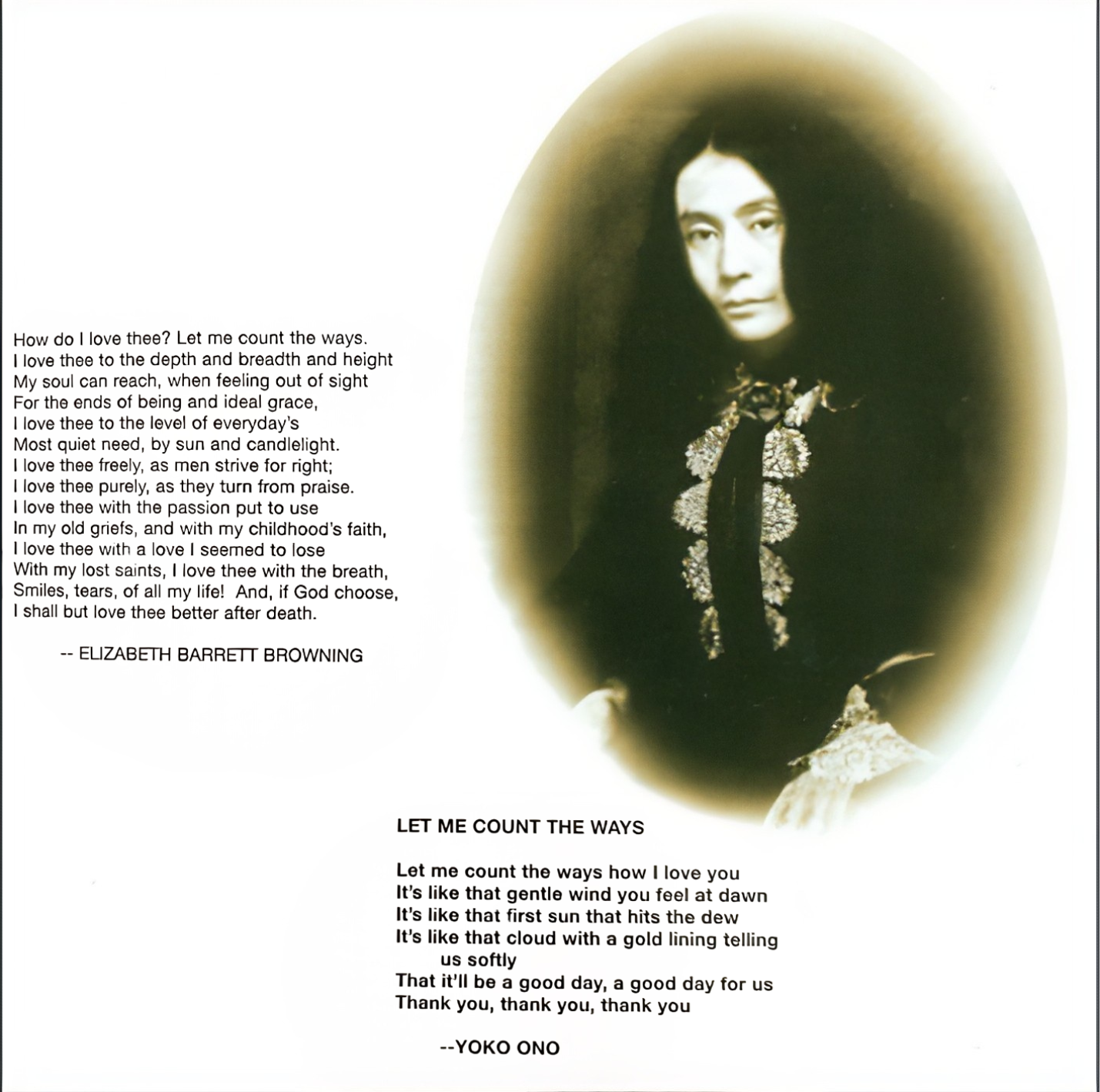 Double Fantasy & Milk and Honey cover images by Kishin Shinoyama © Yoko Ono. John Lennon & Yoko Ono as Robert Browning & Elizabeth Barrett Browning from Milk & Honey 2001 © Yoko Ono. Background image by Kishin Shinoyama © Yoko Ono.